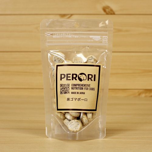 パピーからシニアまで食べることができる、安心の国産・無添加、PERORIの黒ゴマボーロ。