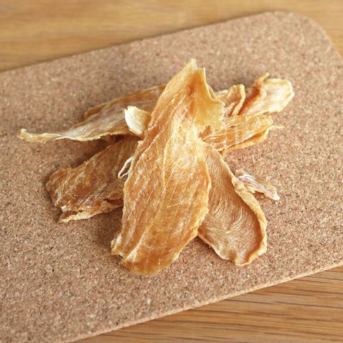 人間も食べられる新鮮な鶏のささみ肉のみを使用し、保存料等の添加物を一切使わず、栄養素を壊さないよう、低温でじっくりと時間をかけて乾燥させています。