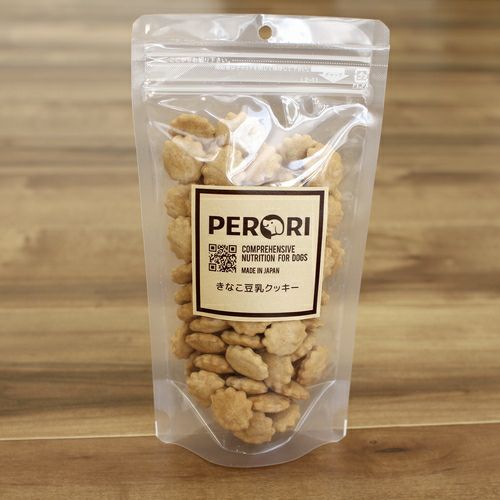 パピーからシニアまで食べることができる、安心の国産・無添加、PERORIのきなこ豆乳クッキー。