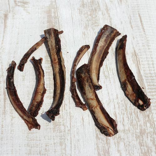 骨だけでなく、しっかりお肉もついた状態で、低温でじっくり乾燥させたアバラ骨ジャーキー。