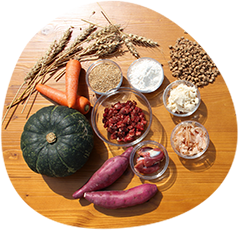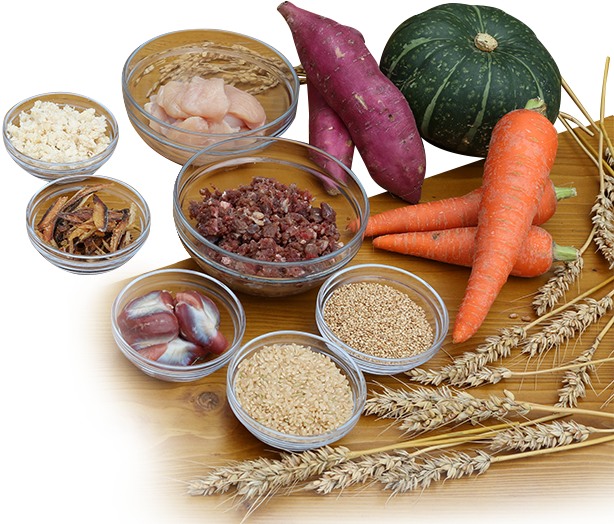 食肉衛生検査工程を経た鮮度の高い精肉、採れたての新鮮な国産野菜、穀物を主原料に天然素材のみで作られた無添加ドッグフード。もちろん、防腐剤や合成保存料等の添加物は一切使用しておりません。本当に食べさせてあげたいドッグフードをお探しの方にこそ知って欲しい。本当にいいものはきっと愛犬にもわかるはず…。