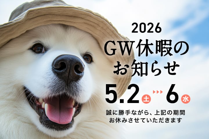 誠に勝手ながら2026年5月2日(土)~2026年5月6日(水)までGW休暇を頂戴いたします。