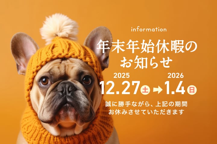 誠に勝手ながら2025年12月27日(土)~2025年1月4日(日)まで年末年始休暇を頂戴いたします。