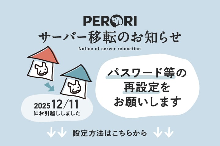 PERORIでは利便性向上とセキュリティ強化のため、サイトシステムを新しい環境へお引越しいたしました。